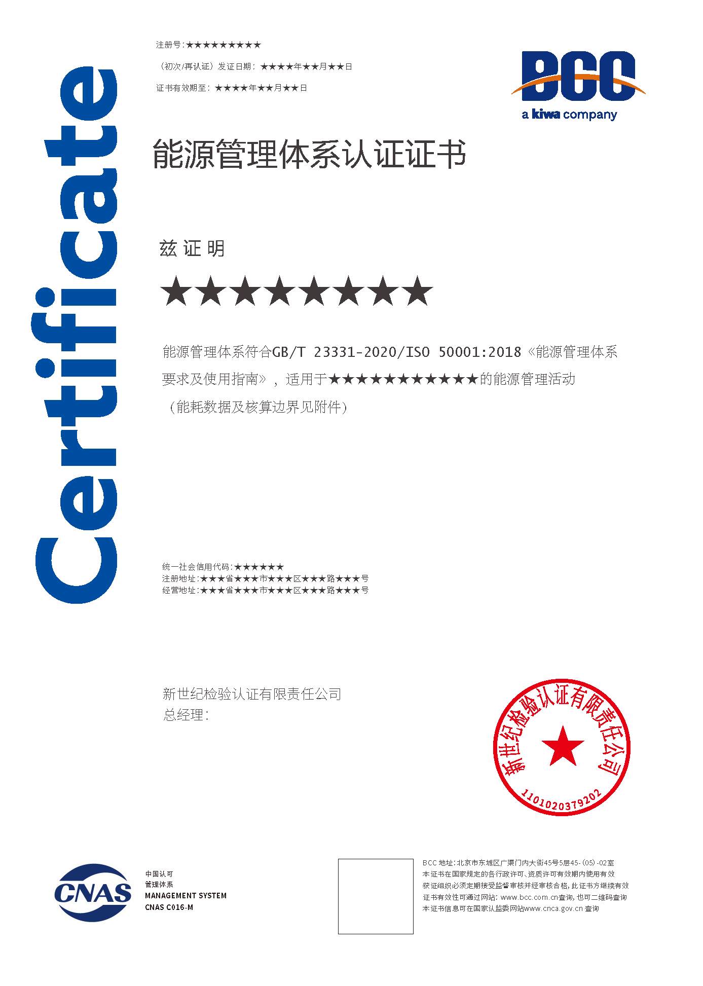 能源管理體系認(rèn)證證書 能源管理體系認(rèn)證證書(能耗附件)