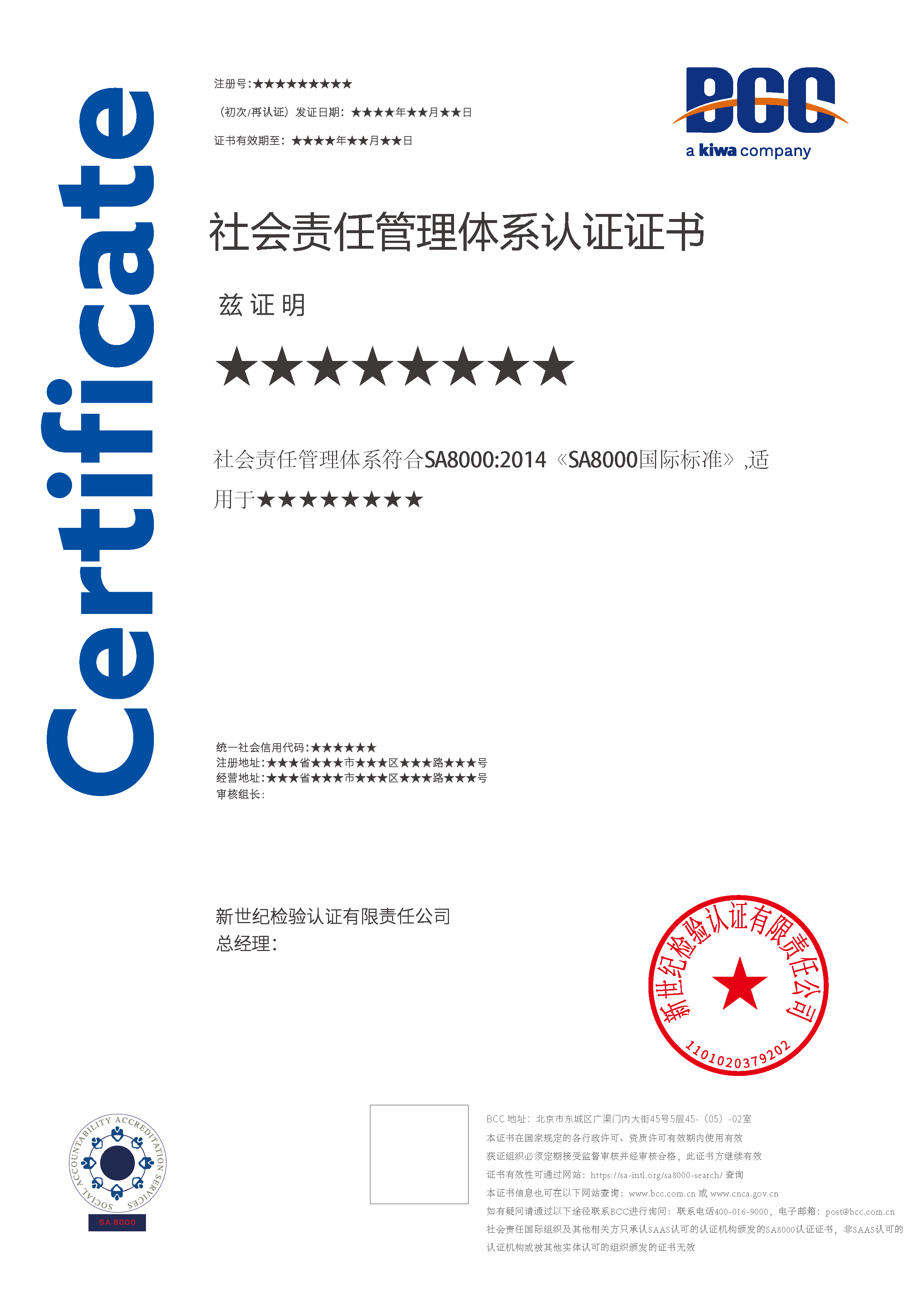 本頁涉及的認證服務中均有對應的《認證實施規(guī)則》,BCC擁有其最終解釋權。任何組織及個人未經(jīng)BCC許可,不得以任何形式全部或部分使用(法律要求除外)認證相關信息。如需獲取相關實施規(guī)則請用以下方式聯(lián)系獲?。弘娫挘?10-58579316 郵箱:fwjs@kiwa.cn