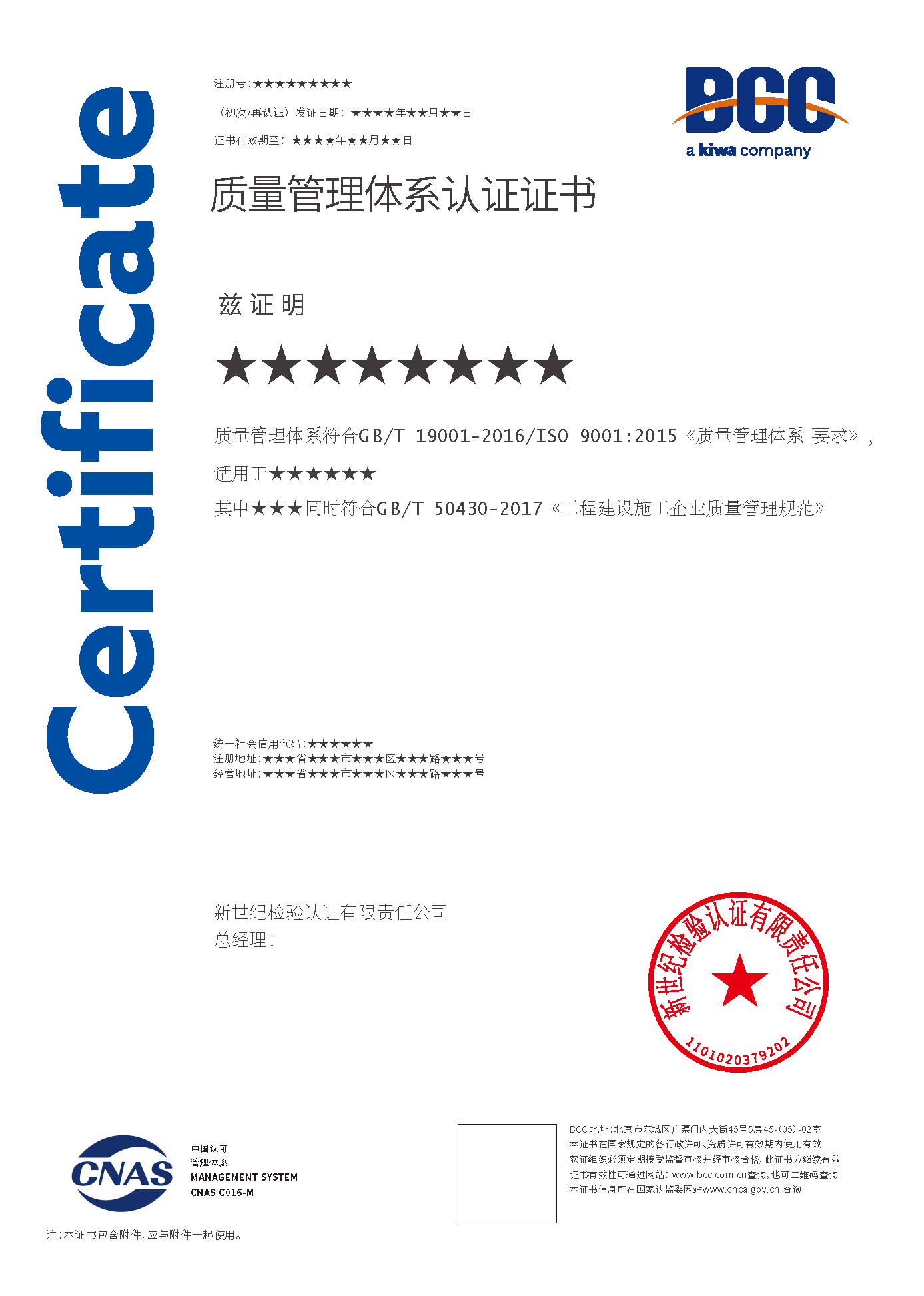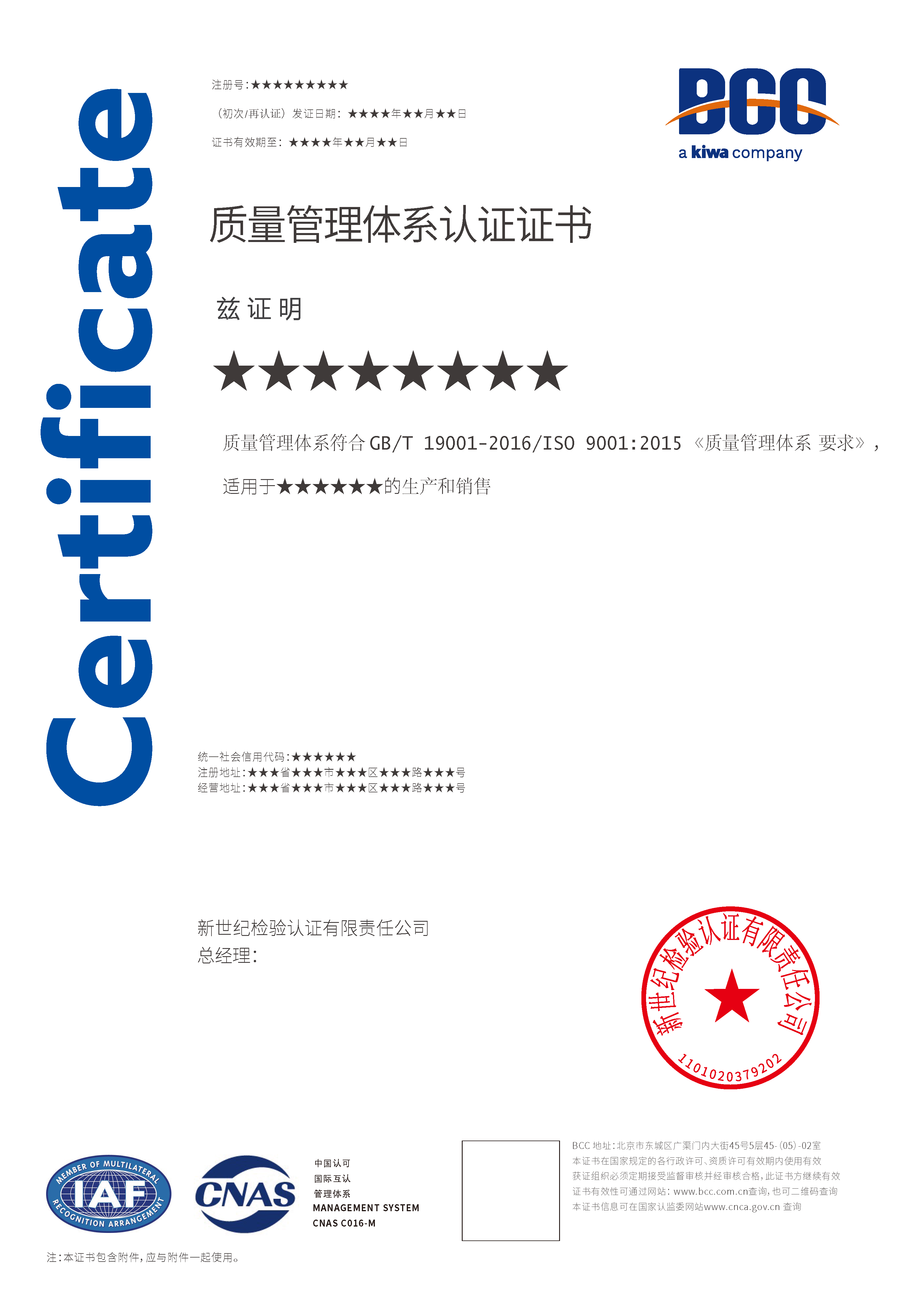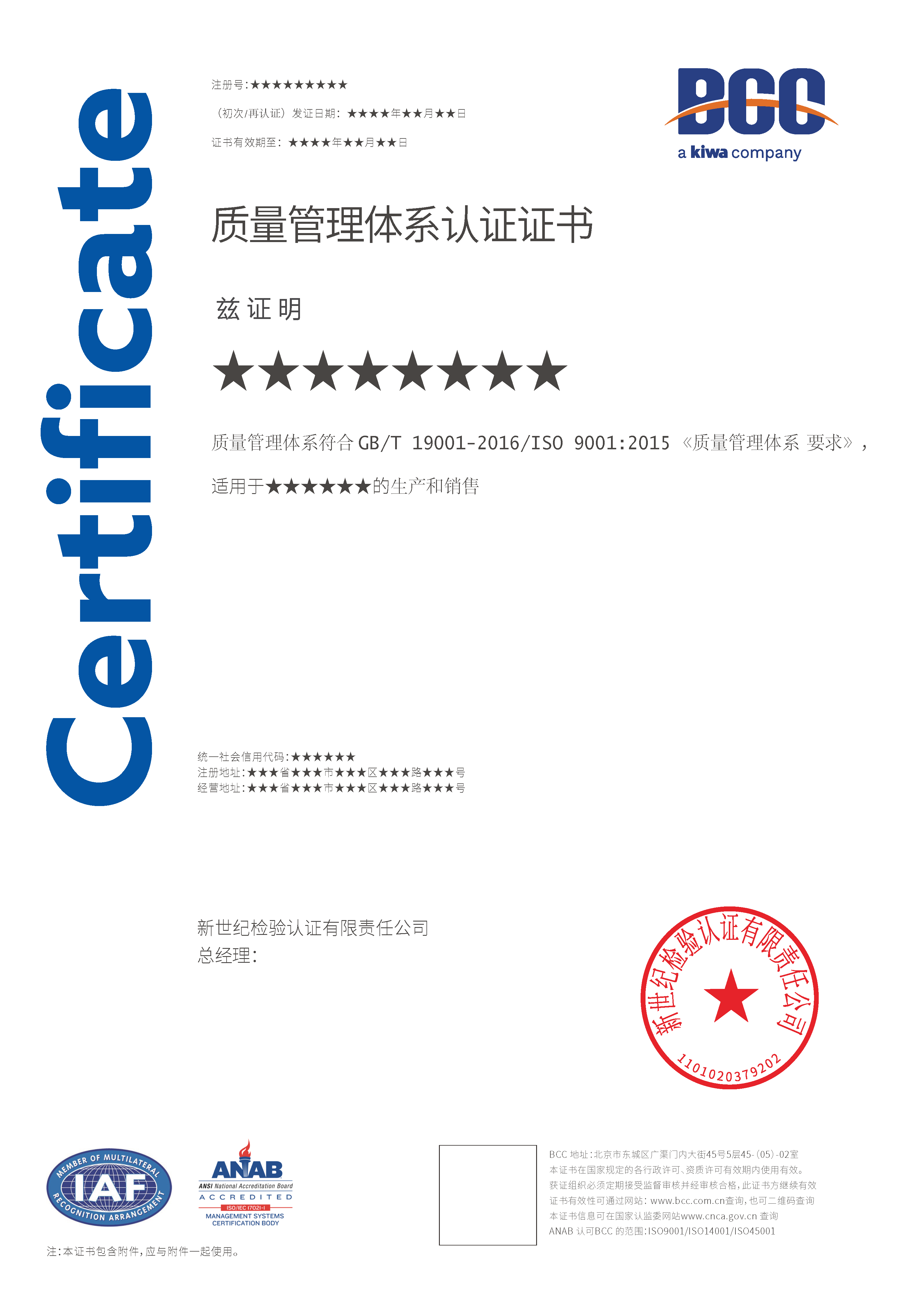 本頁涉及的認證服務中均有對應的《認證實施規(guī)則》,BCC擁有其最終解釋權。任何組織及個人未經(jīng)BCC許可,不得以任何形式全部或部分使用(法律要求除外)認證相關信息。如需獲取相關實施規(guī)則請用以下方式聯(lián)系獲?。弘娫挘?10-58579316   郵箱:fwjs@kiwa.cn